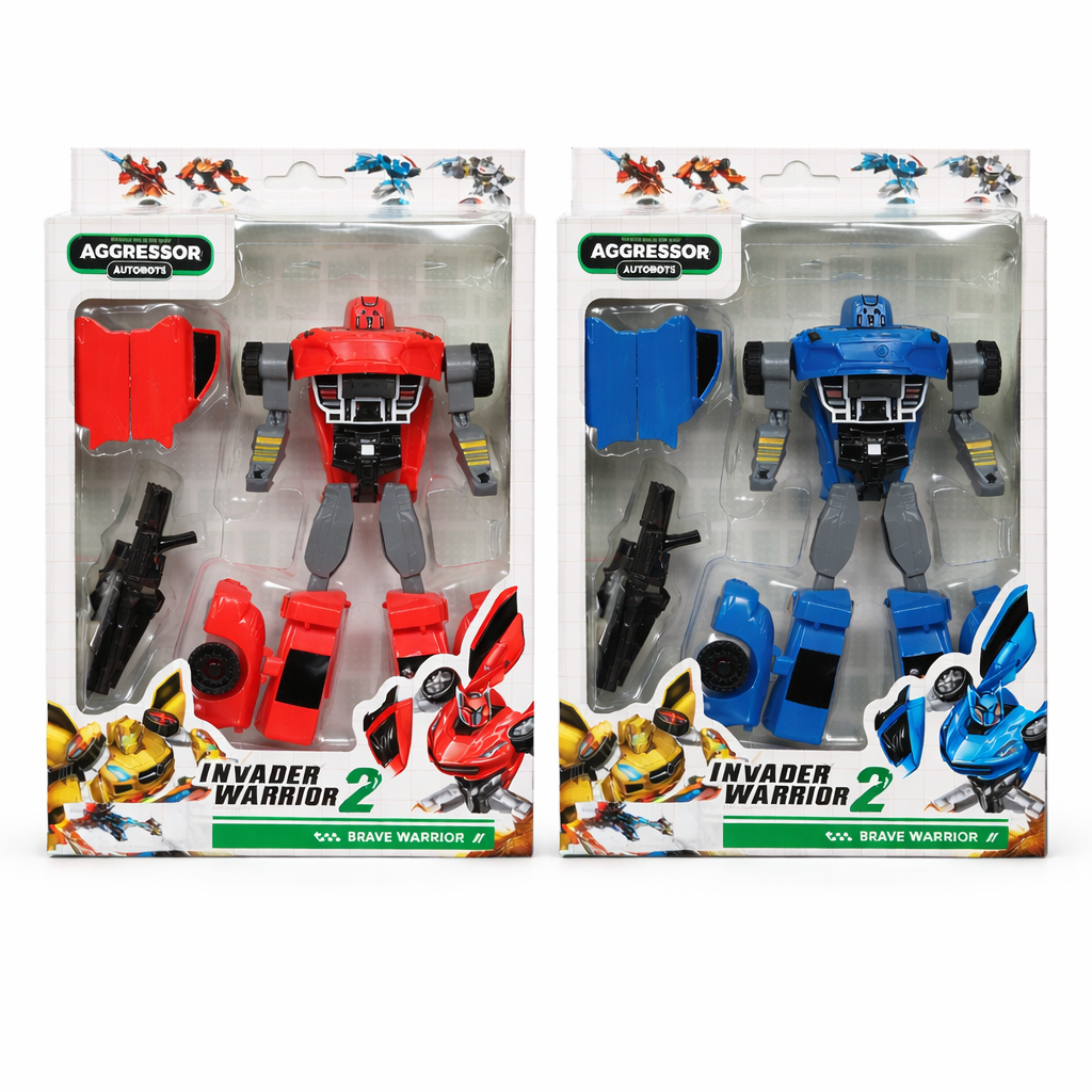 Juguete robot transformable en coche. Material plástico según normativa europea del juguete. Funcionamiento manual. Colores y modelos surtidos.